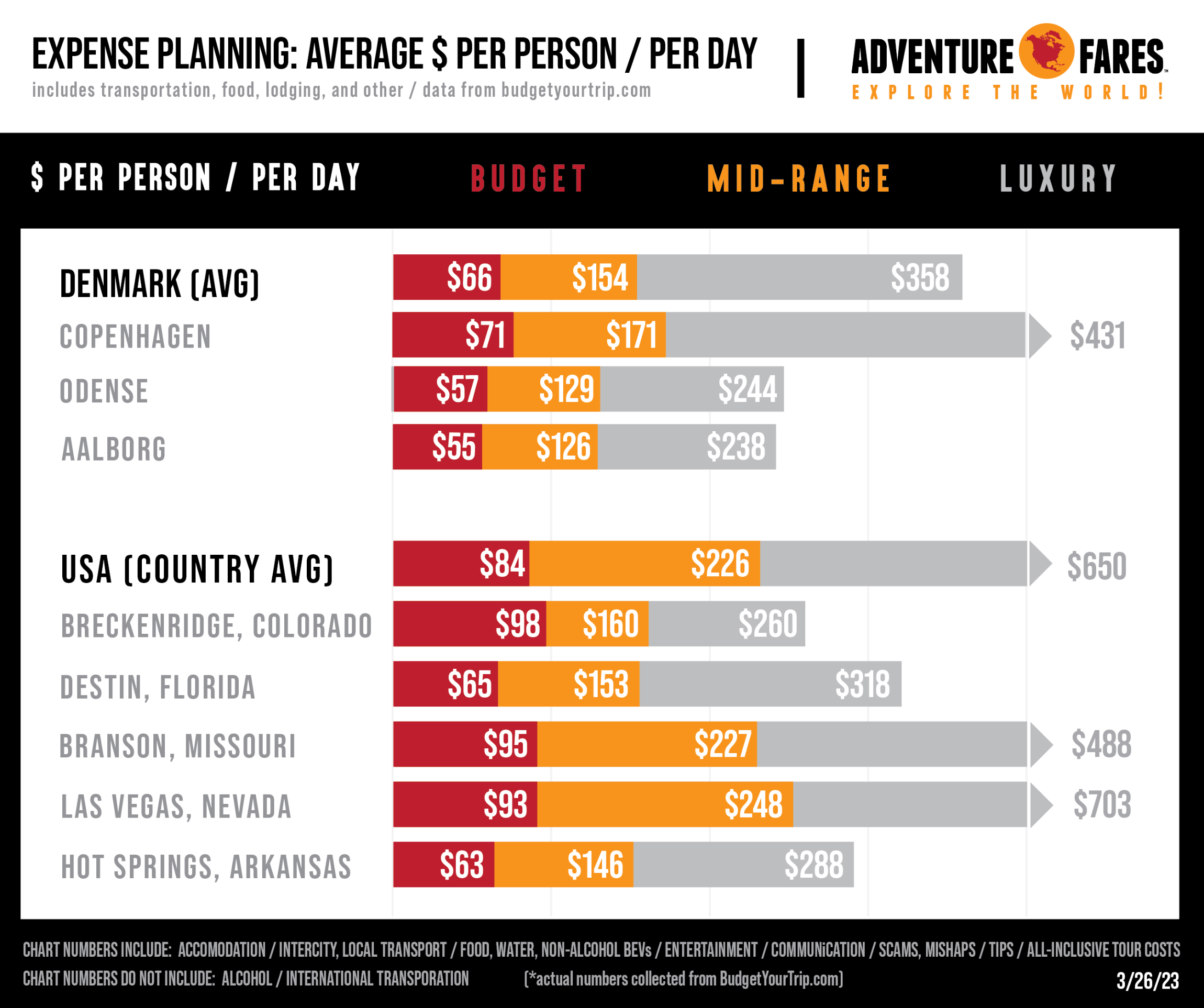 We typically go to Budget Your Trip to research budgeting! We highly recommend their website. They do a fantastic job of compiling data from thousands of travelers around the world! This data is so useful for anyone who’s wanting to make the most of their travel budget. If you sign up and enter your own expenses - you contribute to the data and also get to access their fantastic planning tools - with charts, maps, graphs, and tables of your trip finances. Bookmark their site, and go there for a lot more in-depth budgeting research: BudgetYourTrip.com